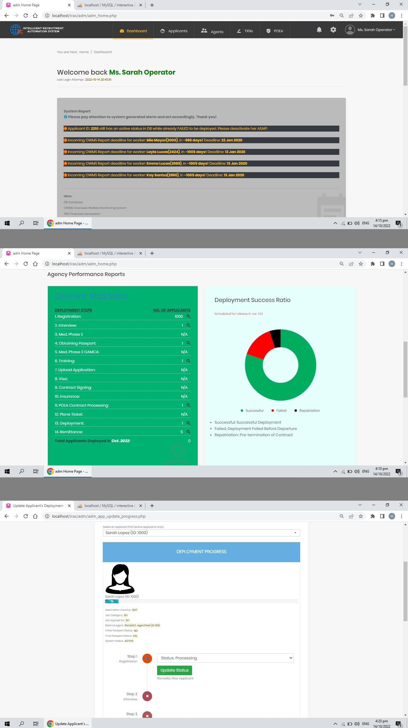 I helped them by building exactly what they needed. A visual representation (vertical pointed timeline) was made to show the current step of the application for any given job-seeker in the system, again with many more details and features. Ohh, before I forget... and with a nice warning screen right inside the dashboard page of admin panel giving heads up as to who is approaching what deadline in how many days! Awesome stuff! :)